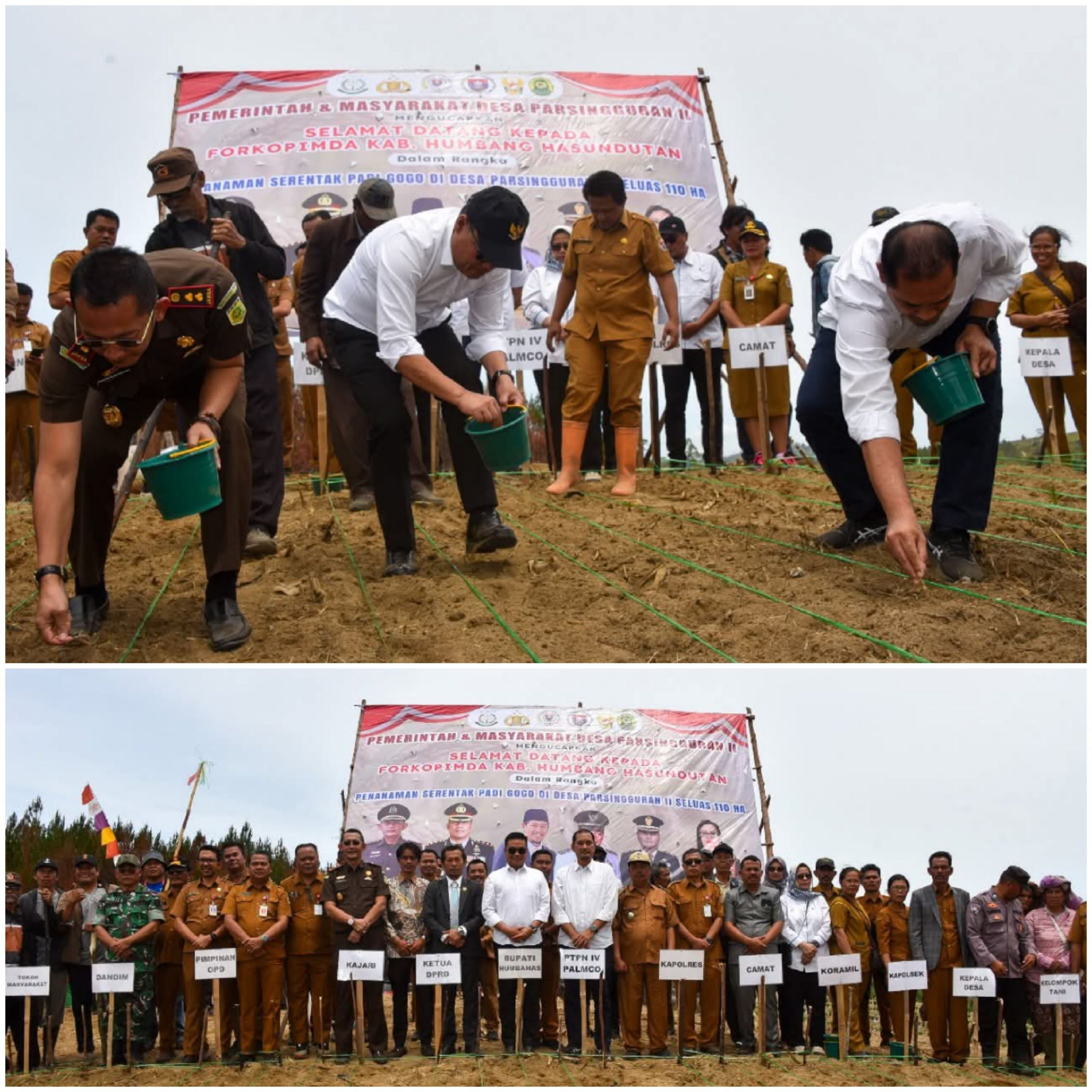 Benih padi Gogo yang ditanam ini merupakan CSR dari PTPN IV, sebanyak 3.740 kg diberikan kepada 18 Kelompok Tani(KT) diatas lahan 110 ha di desa Parsingguran II kecamatan Pollung. hal itu disampaikan Kepala dinas Pertanian dan Ketahanan Pangan Pemkab Humbahas Ir Junter Marbun saat melakukan penanaman padi Gogo di Pollung.