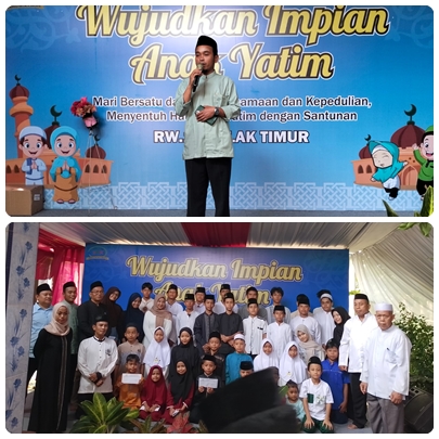 Santunan diberikan kepada 38 anak yatim dalam bentuk uang tunai dan paket sembako. Seluruh bantuan ini berasal dari sumbangan warga RW 10, yang terdiri dari enam RT.