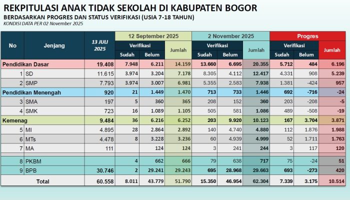 (Rekapitulasi Progres Penanganan ATS Kabupaten Bogor Tahun 2025).