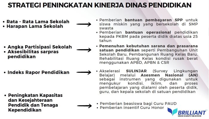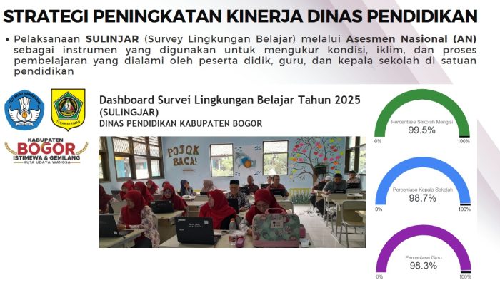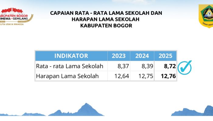 Dalam peningkatan kualitas layanan pendidikan dalam capaian Rata-Rata Lama Sekolah. Pemerintah Kabupaten Bogor melalui Dinas Pendidikan menorehkan prestasi peningkatan capaian yang segnifikan pada tahun 2025. Dimana serangkaian program telah dilaksanakan yang diantaranya ;