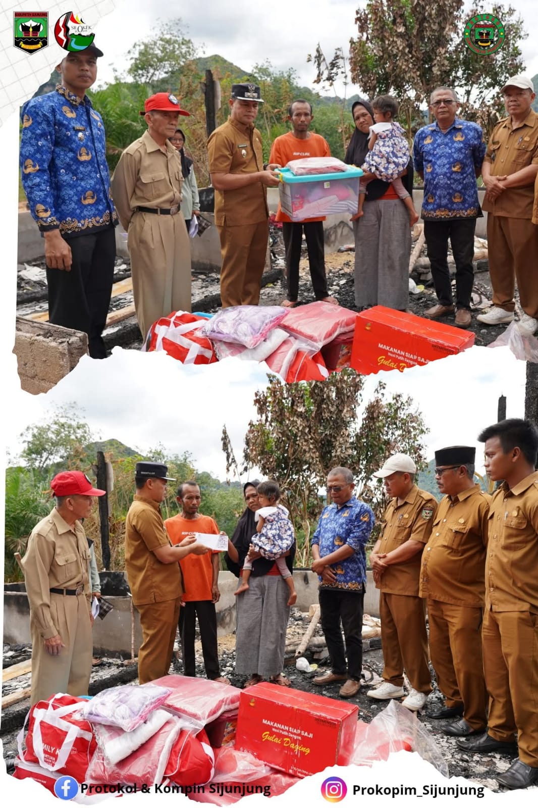 Merdeka45 News| Sijunjung, Sumatera Barat – Pemerintah Kabupaten Sijunjung kembali menunjukkan kepeduliannya terhadap masyarakat yang tertimpa musibah. Wakil Bupati Sijunjung, H. Iraddatillah, S.Pt, bersama Baznas Kabupaten Sijunjung menyerahkan bantuan langsung kepada korban kebakaran di Jorong Simaru, Nagari Tamparungo, Kecamatan Sumpur Kudus, Senin (17/11/2025).